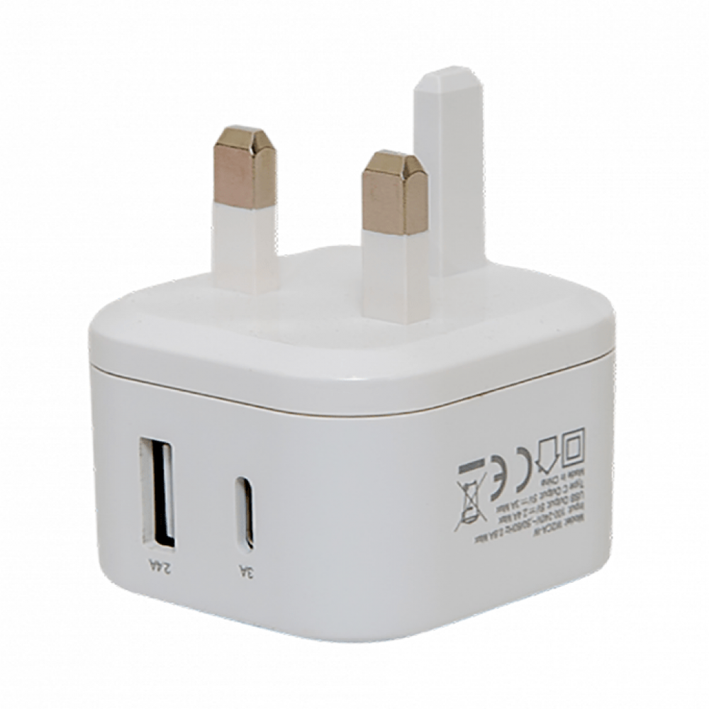 شاحن جداري بمنفذ عادي واخر تايب سي من بايسل – ابيض