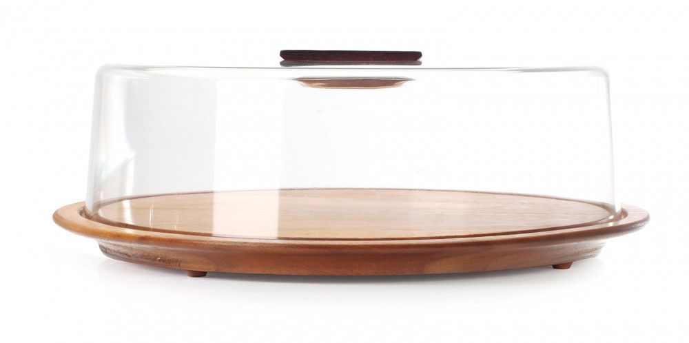 صحن كيك بيلي خشب مدور غطاء اكريليك