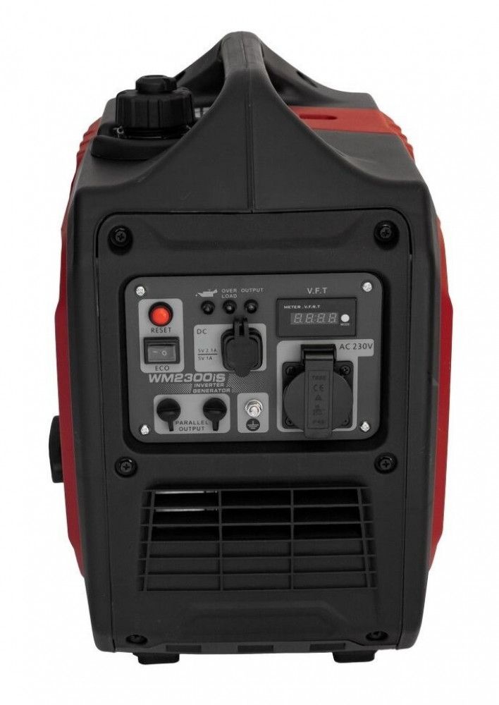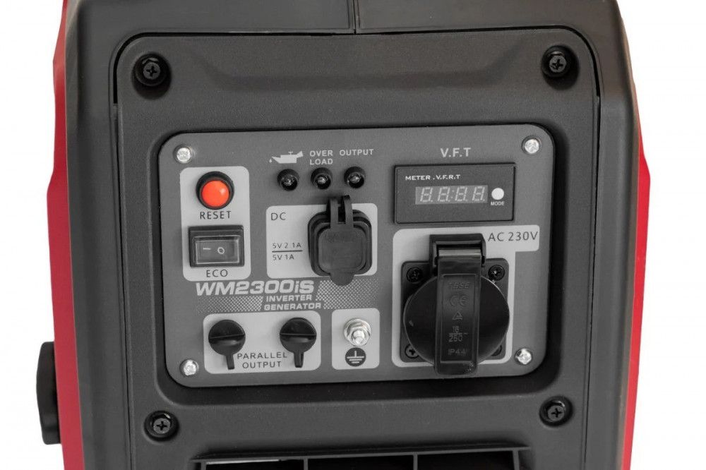 الموديل WM2300iS الطاقة المقدرة 1.9 كيلو واط كحد أقصى. power2.2 كيلوواط تردد 50 هرتز / 60 هرتز AC الجهد 110V / 120V / 220V / 240VD.C5V (2A) طريقة تنظيم الجهد العاكس طراز المحرك WM148F / P أسطوانة واحدة من نوع المحرك ، 4 أشواط ، مبردة بالهواء ، صمامات علوية (OHV) قوة المحرك 2.7 عدد دورات رمح المحرك 4800 دورة في الدقيقة