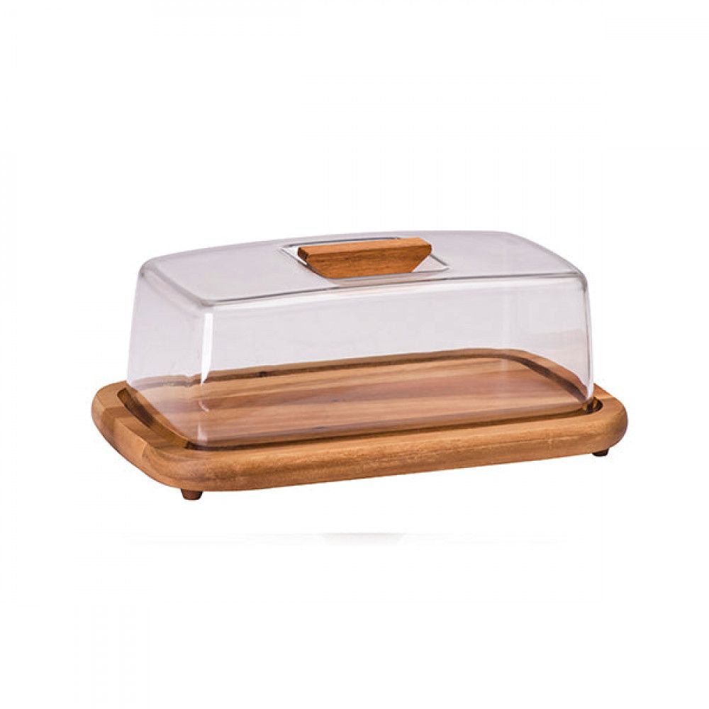 صحن كيك بيلي خشب مستطيل غطاء اكريليك