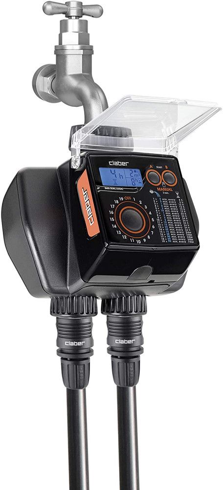 - A single water timer with a wide selection of pre-set times to manage two independent irrigation lines with the utmost simplicity, pressing just a few push-buttons.