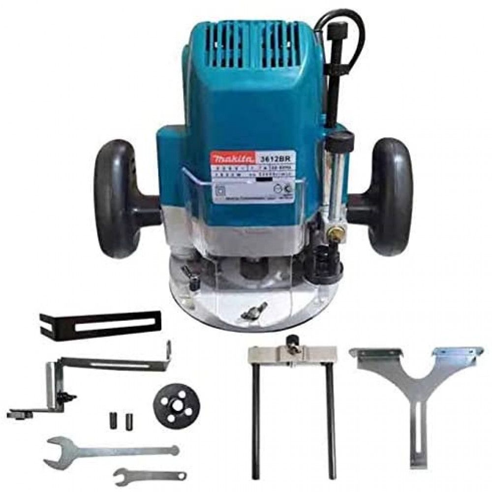 3612 Makita Router is a highly functional tool designed to cut, trim, and shape various materials. The 3612 Makita comes with a 2.5 meters power supply cord. The 3612 Makita Router makes fast, more accurate, and powerful routing possible. It has a plunge capacity of 0 – 65mm for easy cutting into or through the material. The Router gives continuous rating output of 1600W for superior and consistent performance. It has a weight of 5.5Kg and base diameter of 160mm. The tool kit also includes two wrenches, trimmer, two collet sleeve, guide holder, and straight bit.
