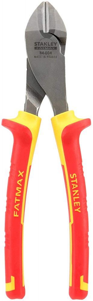 - Stanley diagonal cut plier 180mm 0 84 004Manufactured to exacting European standards individually tested to 10,000 volts and approved for working around live circuits that do not exceed 1,000 volts. The bi-material handles offer the user improved control and grip, incorporating slip guard shoulders for additional safety. They are resistant to temperatures from 20° to +70°C making them ideal for use in demanding or hostile environments.Type: H.D. Diagonal Cutting PlierLength: 180mm (7in)