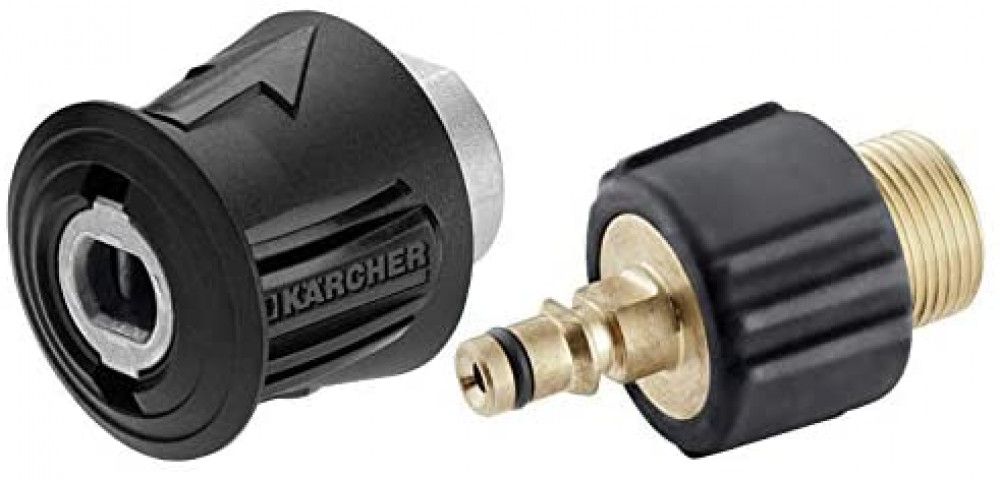 - Two-part adaptor set for the connection of an extension hose with screw thread to a pressure washer with Quick Connect system