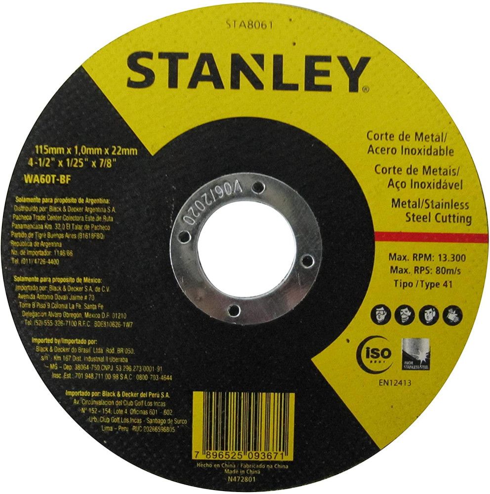 Abrasive steel metal cutting grinder blade. Used for metal steel cast iron inox. Stanley metal cutting disc is designed for cutting and slotting all types of metal, including steel, cast iron and other hard metals. This cutting disc is for use in angle grinders and is designed for metal cutting.